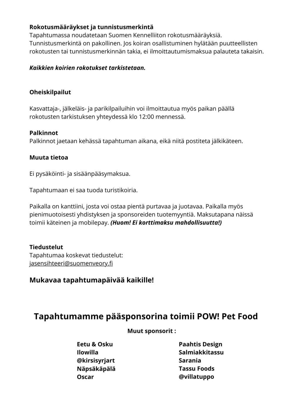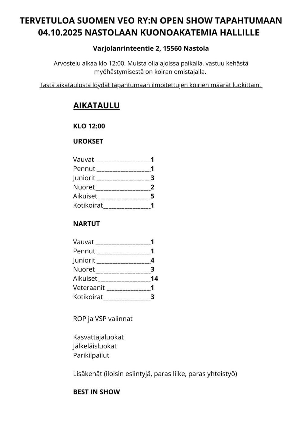 Kutsukirje& aikataulut